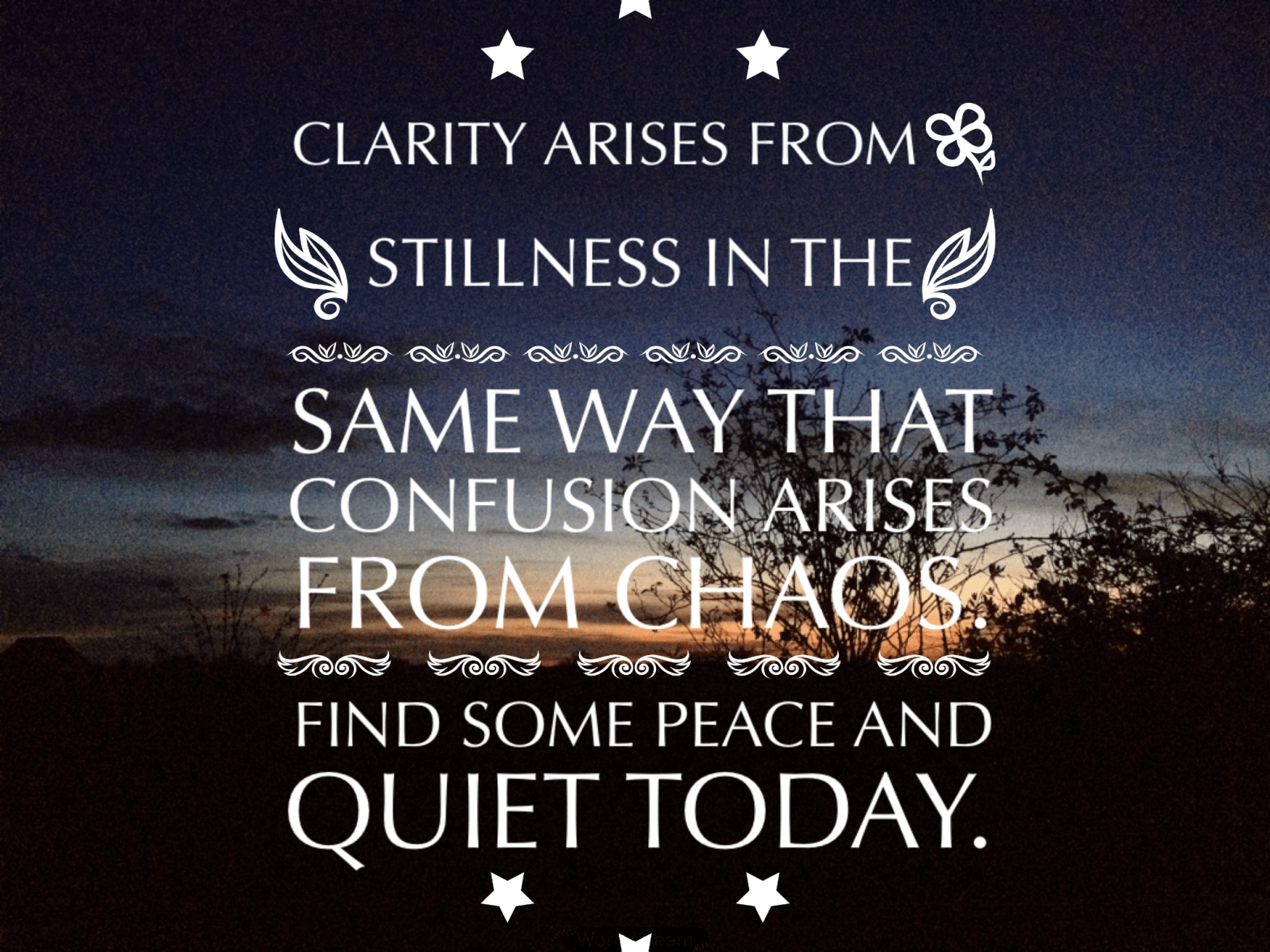 Clarity arises from stillness in the same way that confusion arises from chaos. Find some peace and quiet today.